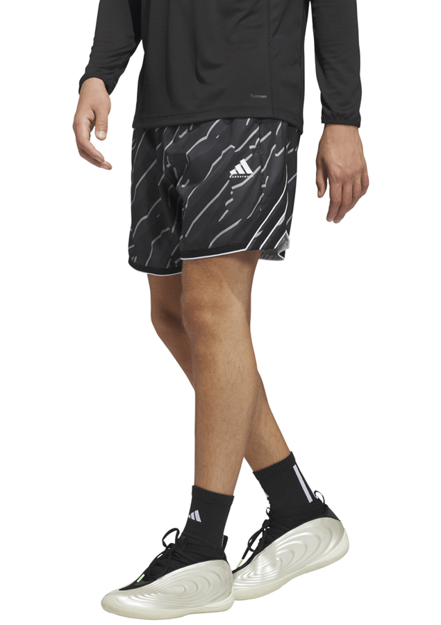 Descubre los Adidas Basketball Crazylite AOP 3 Short "Black", un pantalón corto diseñado para jugadores que desean destacar en la cancha. Su estampado de camuflaje atigrado no solo ofrece un rendimiento óptimo, sino que también marca tendencia. Con un corte holgado, proporciona libertad de movimiento para realizar cortes rápidos y saltos con facilidad.