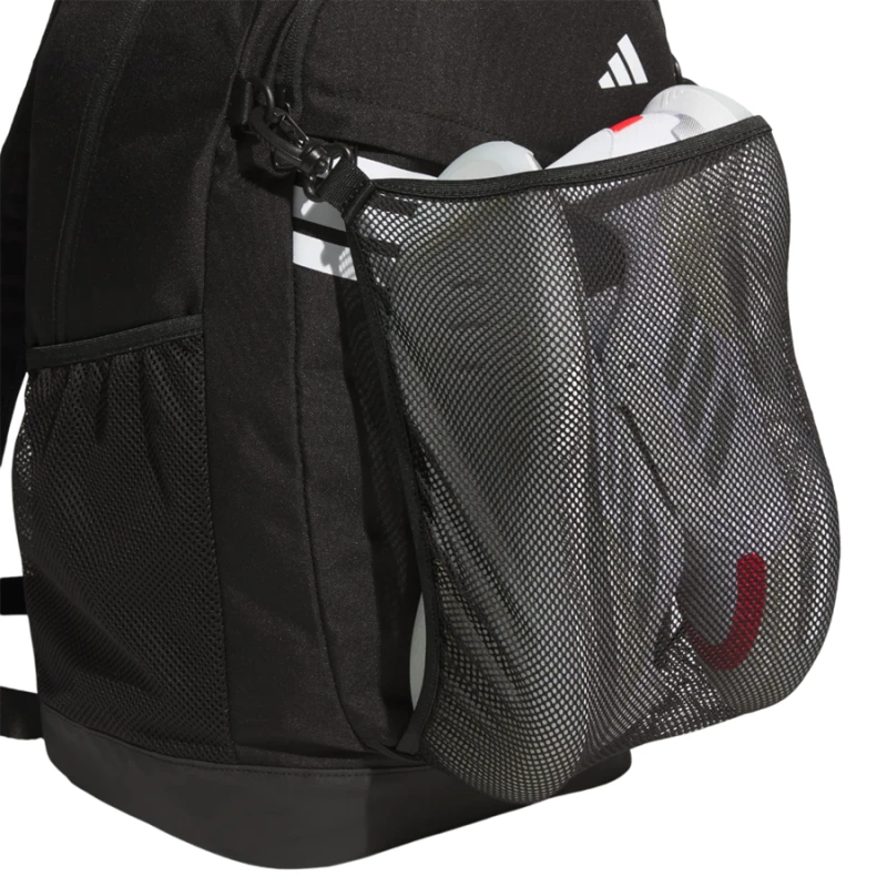 El diseño de la Adidas BB Select Back Pack 2.0 facilita una organización eficiente. Sus múltiples compartimentos garantizan que no solo puedas llevar tu kit de entrenamiento, sino también tus artículos personales sin esfuerzo. El bolsillo lateral de malla es perfecto para llevar una botella de agua, asegurando que siempre tengas hidratación a mano.