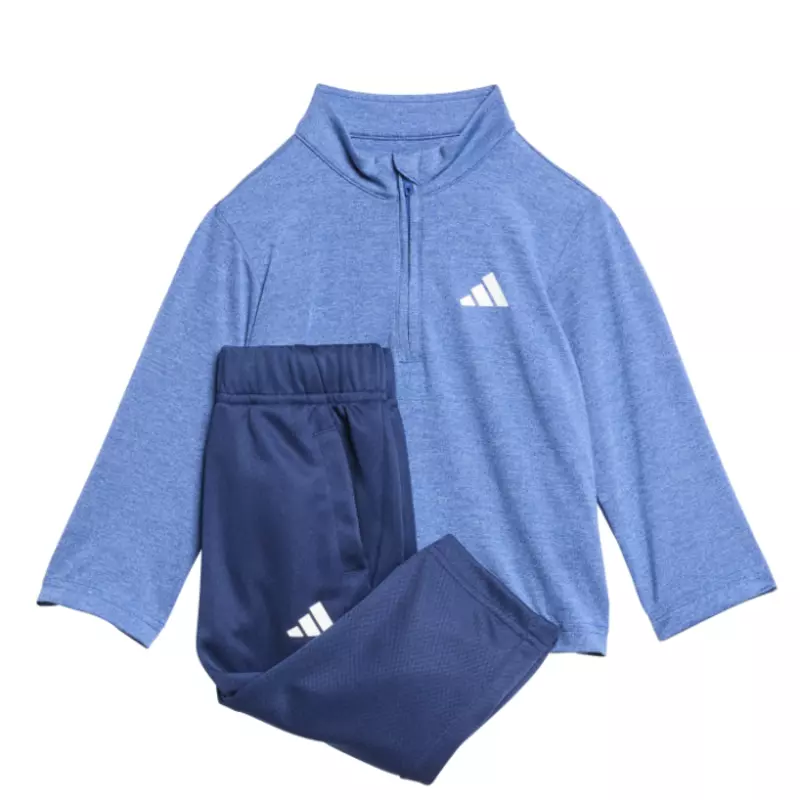 Presentamos el innovador Adidas Goto PZ Sports Set Kids "Blue Fusion", diseñado para introducir a tus pequeños en el emocionante mundo del deporte. Este encantador conjunto incluye una parte superior con cierre a media cremallera en un óptico melange y pantalones sólidos, proporcionando un aspecto de pies a cabeza perfecto para actividades en climas frescos.