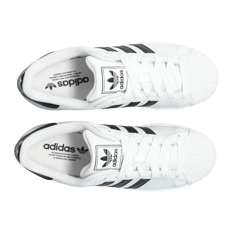 Desde su lanzamiento en los años 70, las Superstar han sabido evolucionar y adaptarse a los cambios de la moda y las necesidades de los consumidores, manteniendo su esencia icónica. Esta versión, en sus colores blanco y negro, se reafirma como un imprescindible en todo guardarropa.
