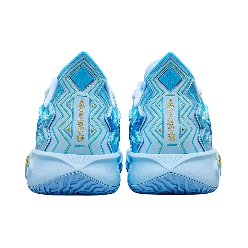 Con un predominio de tonalidades color azul, junto con detalles bordados dorados y verde jade, estas zapatillas destacan por su elegancia y misterio. Estas características resaltan la fuerza y personalidad de quien las porta, asegurando que, tanto dentro como fuera de la cancha, siempre sean el centro de atención.