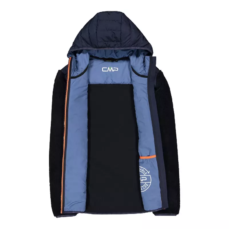 Chaqueta confeccionada en poliéster reciclado, uno de los materiales textiles más sostenibles ya que se elabora mediante la valorización de retales y residuos. La fibra reciclada se procesa para hacer Teddy Fur, con una textura suave y envolvente que recuerda a un oso de peluche. El relleno es Feel Warm Flat, perfecto en situaciones de frío y humedad, fabricado con material reciclado. Puños y dobladillo inferior elásticos y dos bolsillos laterales más un bolsillo en el pecho con cremallera completan la prenda.