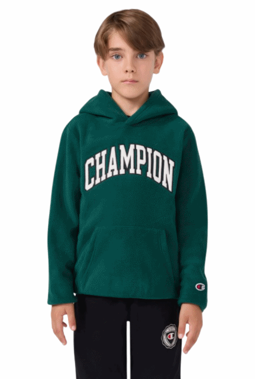 Champion BOYS' FLEECE POLAR HOODIE SCRIPT LOGO FOREST "GREEN"