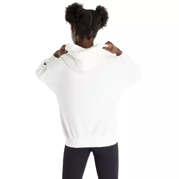 Tanto para trabajar como para divertirte, esta sudadera de mujer con capucha te aportará un toque dinámico y de lo más chic. Está confeccionada en una cálida felpa perchada de algodón grueso y presenta un cómodo corte holgado que te otorga libertad de movimientos. Ideal para combinar con unos leggings o unos vaqueros.