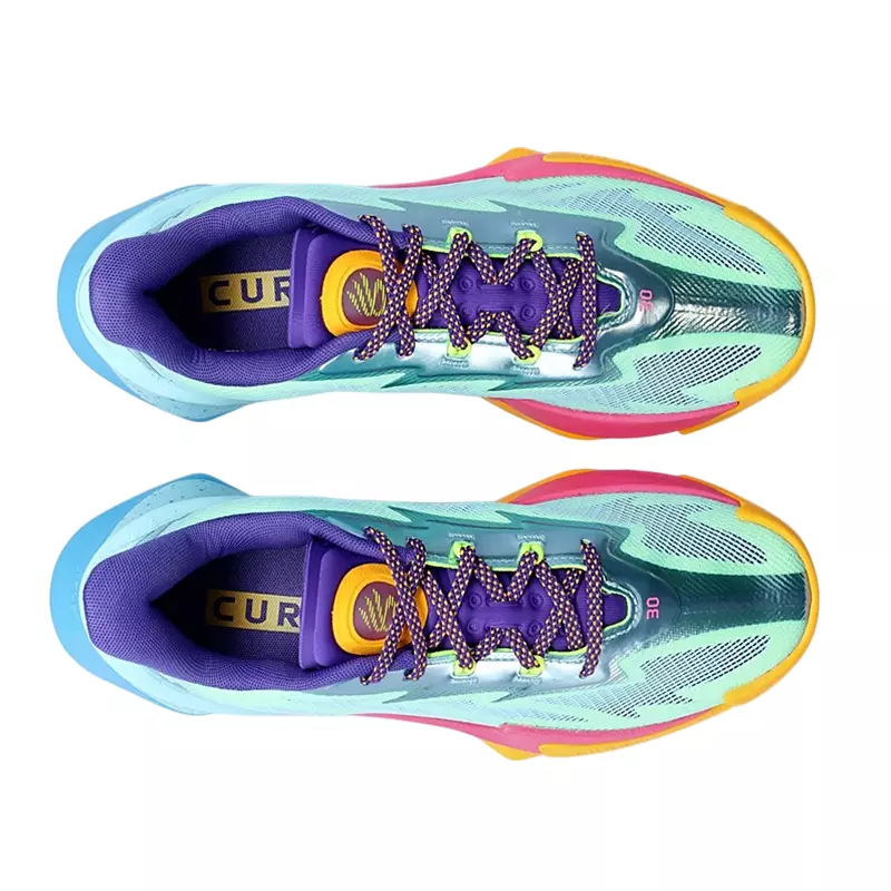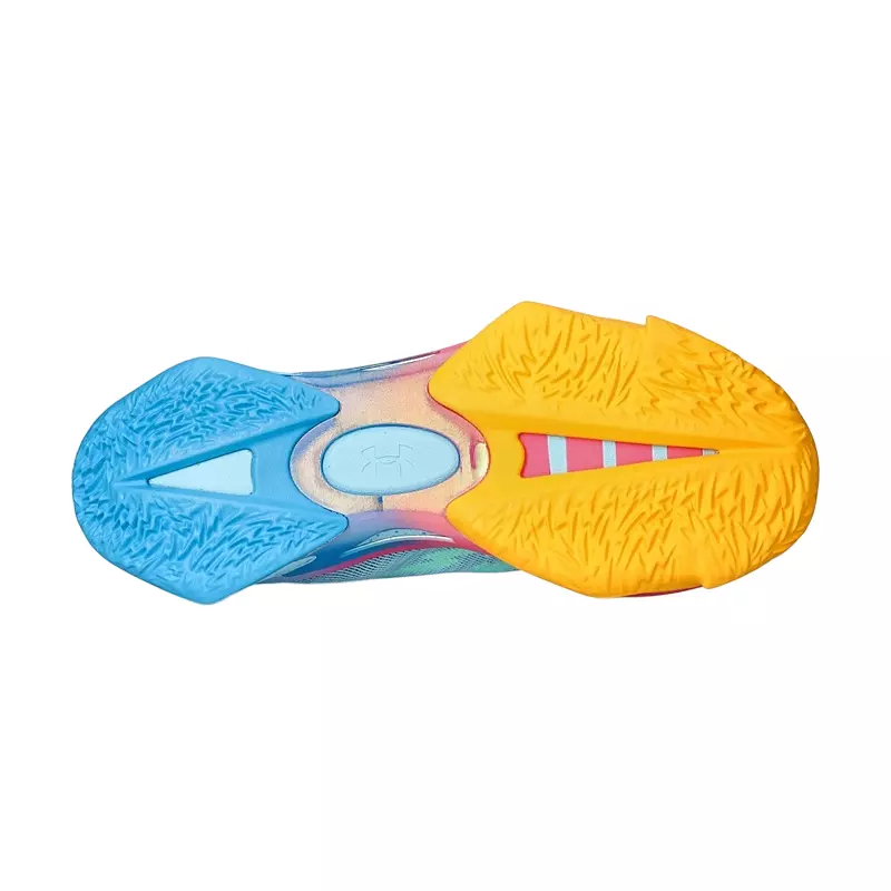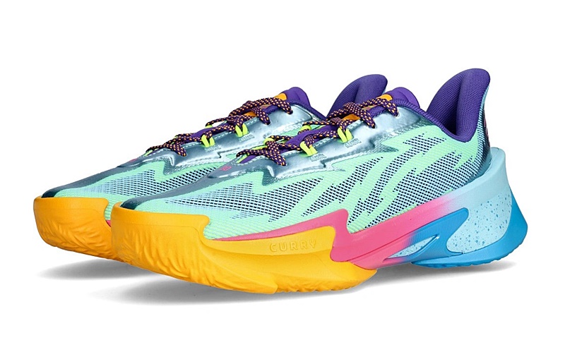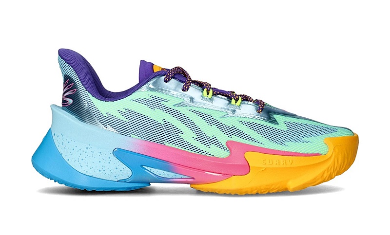 Las Under Armour Curry Series 7 Cotton Candy , inspiradas en las superzapatillas de baloncesto UA, se presentan en una combinación de colores vibrantes: naranja, verde, rosa, azul, morado y plateado.