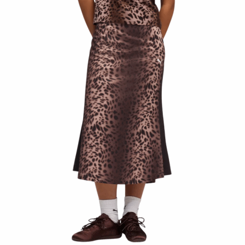 Desde su debut en 1968, el chándal T7 ha sido un referente icónico de la moda urbana, y ahora, Puma reinventa este clásico con la impresionante Falda Puma Midi T7 Leo Luxe Track "Black". Esta prenda no solo conserva las líneas atemporales y los detalles cónicos característicos del T7, sino que lleva el diseño al siguiente nivel con toques de estampado de leopardo que aportan un aire salvaje y moderno.