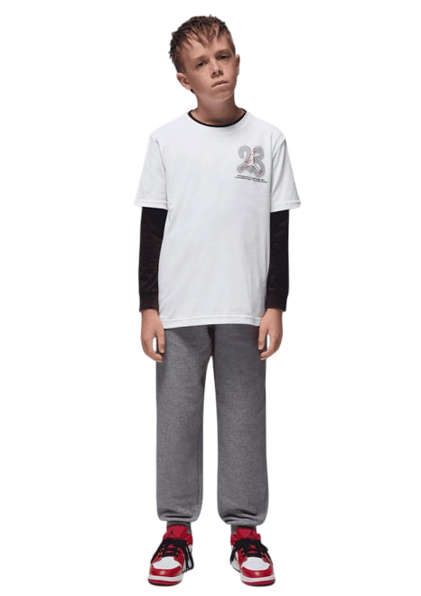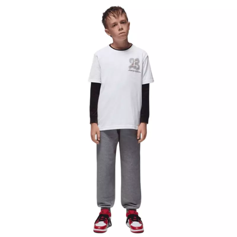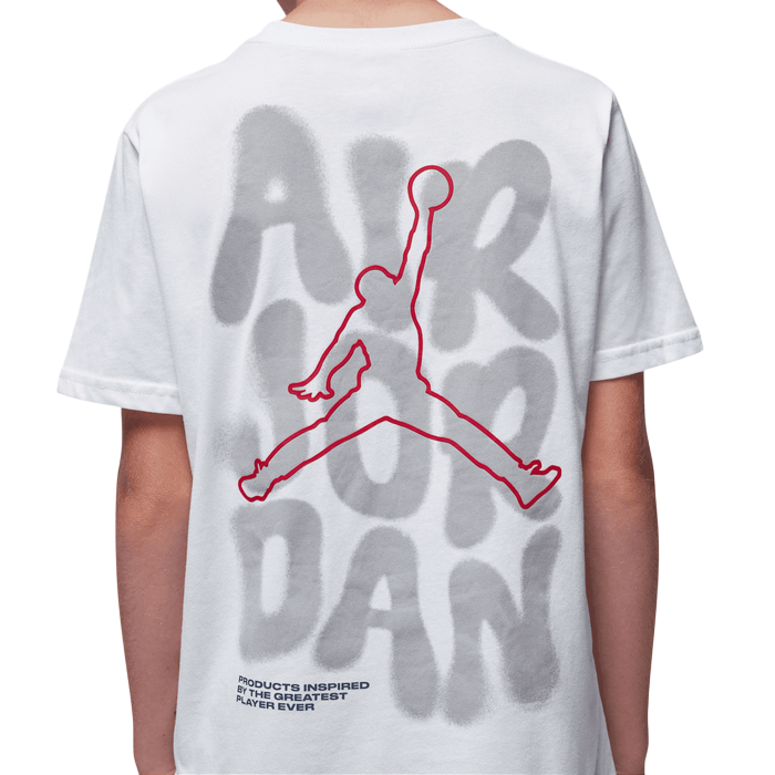 Transforme el estilo cotidiano de su pequeño con la camiseta Jordan Kids JDB 23 Spray Throw UP Tee en color "White". Esta pieza destaca por su diseño creativo que incorpora la esencia urbana y deportiva de la marca Jordan, ideal para los jóvenes amantes de la moda y el baloncesto.