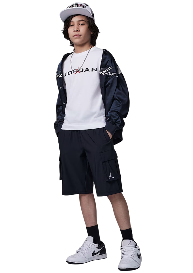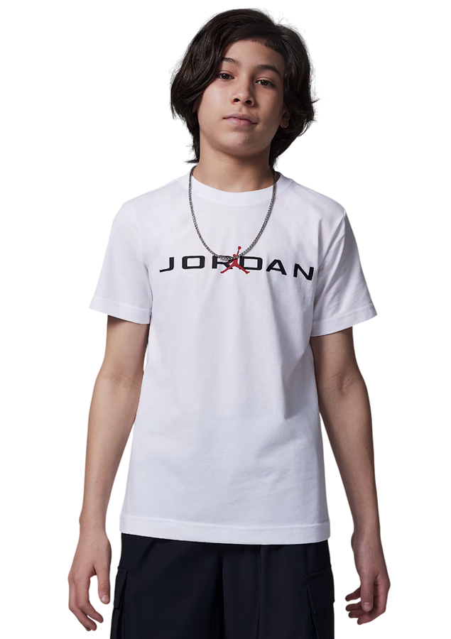 La Jordan Kids MJ Air Stretch SS Crew Tee "White" es la playera ideal para mantener el estilo clásico que tanto te gusta en el guardarropa de los pequeños. Con un diseño versátil, esta camiseta es perfecta para combinar con cualquier otro atuendo, convirtiéndose en un infaltable de las aventuras cotidianas.