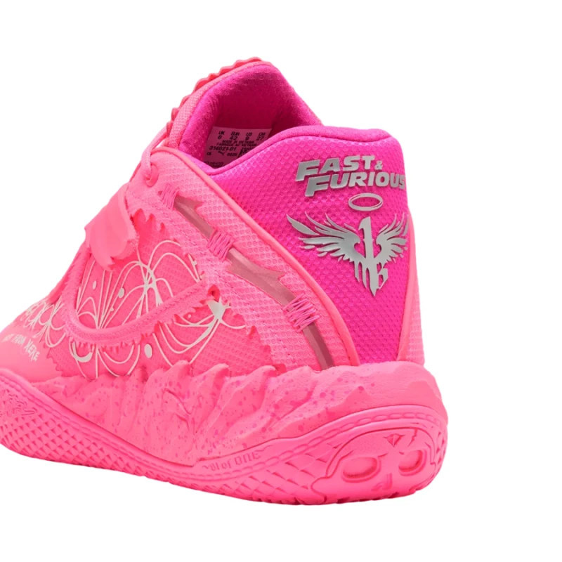La quinta zapatilla de la firma LaMelo Ball, la MB.05, fusiona la energía de estrella del rock con el dinamismo de la franquicia Fast & Furious. En colaboración con PUMA, este modelo singular refleja el estilo vibrante y audaz del Honda S2000 rosa intenso de Suki. Inspirada en Charlotte, la zapatilla despliega un diseño en tonos azul y morado que no pasa desapercibido. Este lanzamiento captura la esencia de velocidad y adrenalina que caracteriza a Fast & Furious, con detalles icónicos como las llamas amarillas y plateadas.