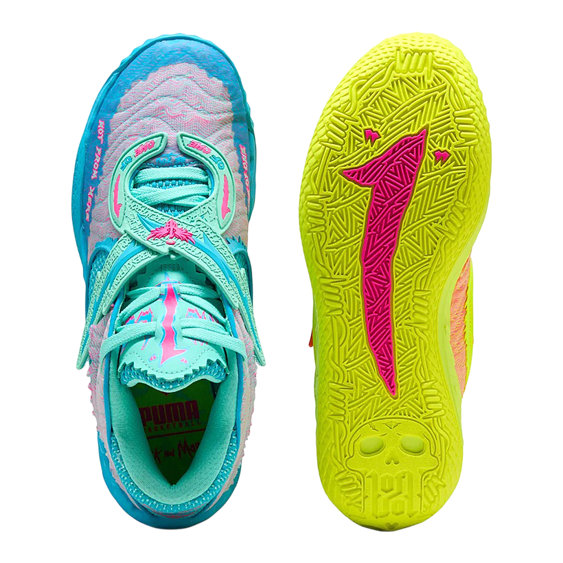 Descubre el asombroso universo de LaMelo Ball MB.05 "Rick & Morty", la tercera edición de la cautivadora colaboración entre PUMA y Warner Bros. Esta singular colección se sumerge en el multiverso de Rick y Morty, presentando unas zapatillas que combinan rendimiento en la cancha con una osadía creativa sin precedentes. El diseño, con su característica asimetría, refleja la impredecible energía de la serie animada.