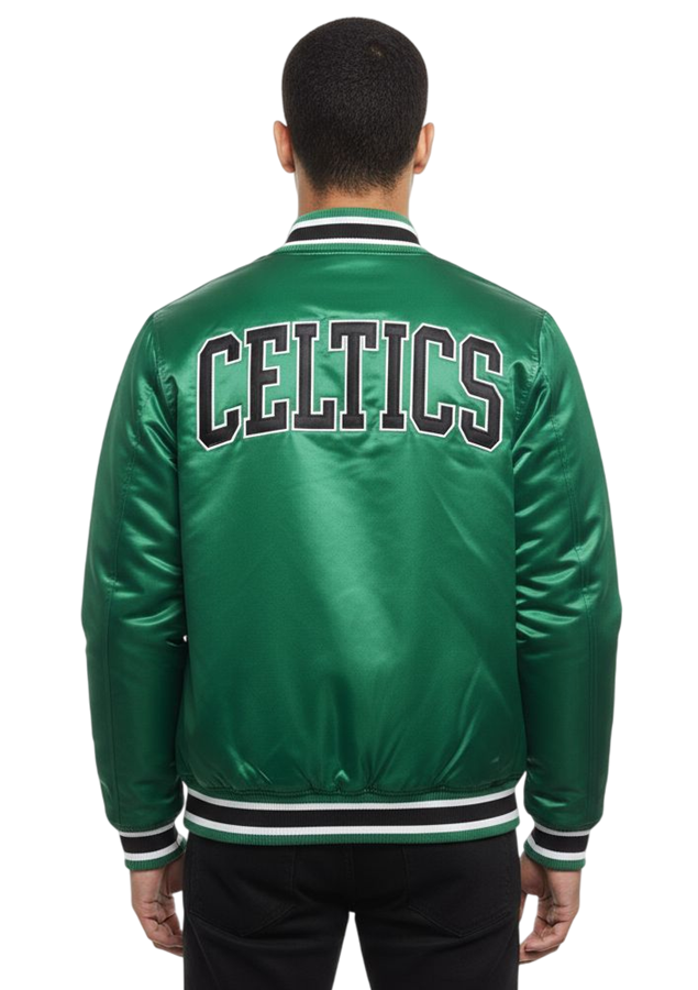 - Diseño Oficial NBA: Con el icónico logo bordado de los Boston Celtics, esta chaqueta rinde homenaje a uno de los equipos más legendarios de la NBA.