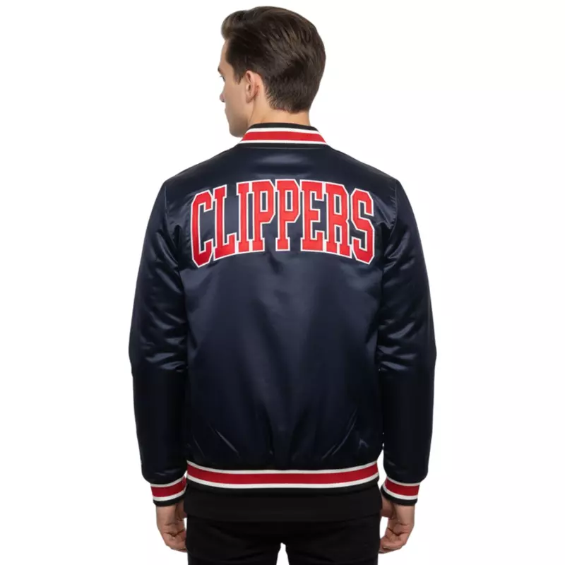 - Diseño exclusivo: La chaqueta cuenta con un bordado detallado del logo de los L.A. Clippers, exhibido de manera prominente en la parte delantera, que añade un toque de autenticidad y orgullo para los aficionados.
