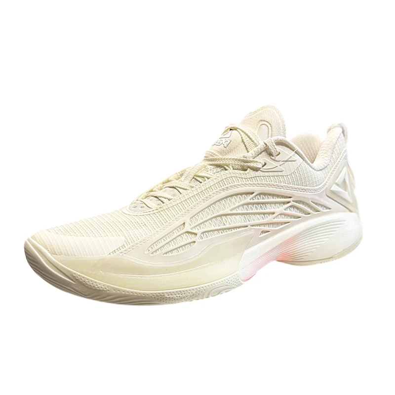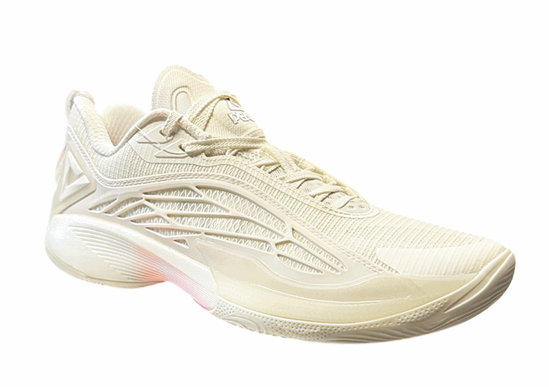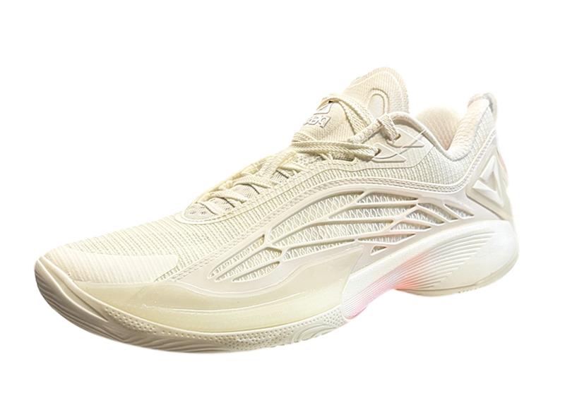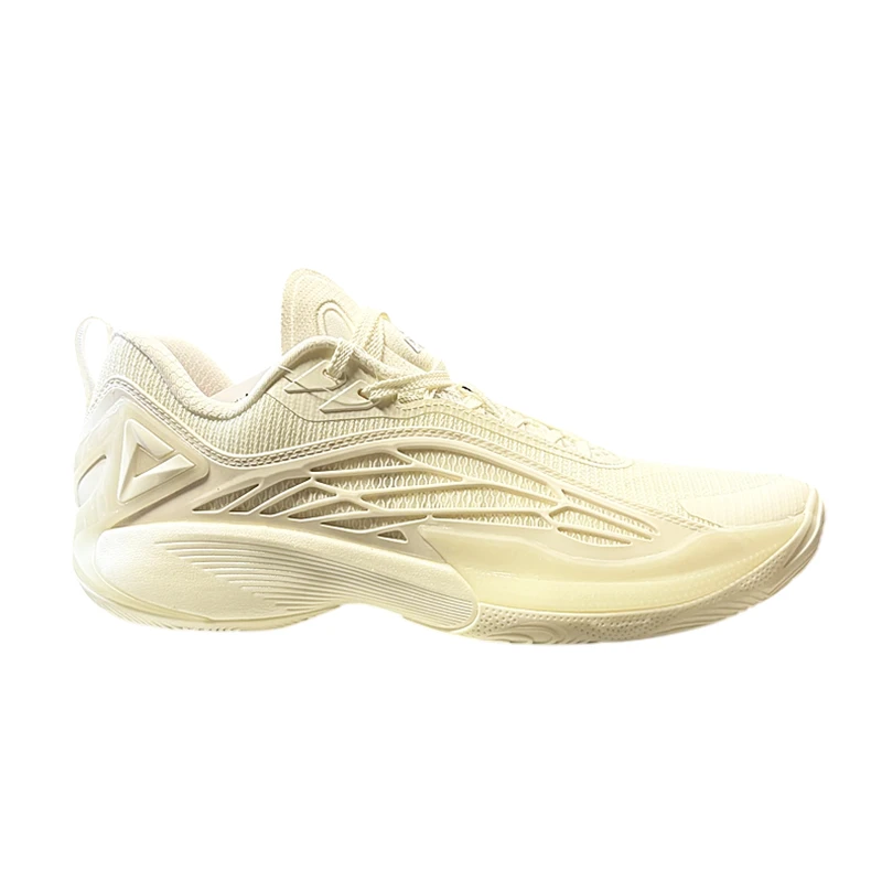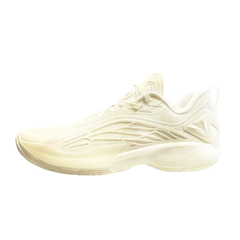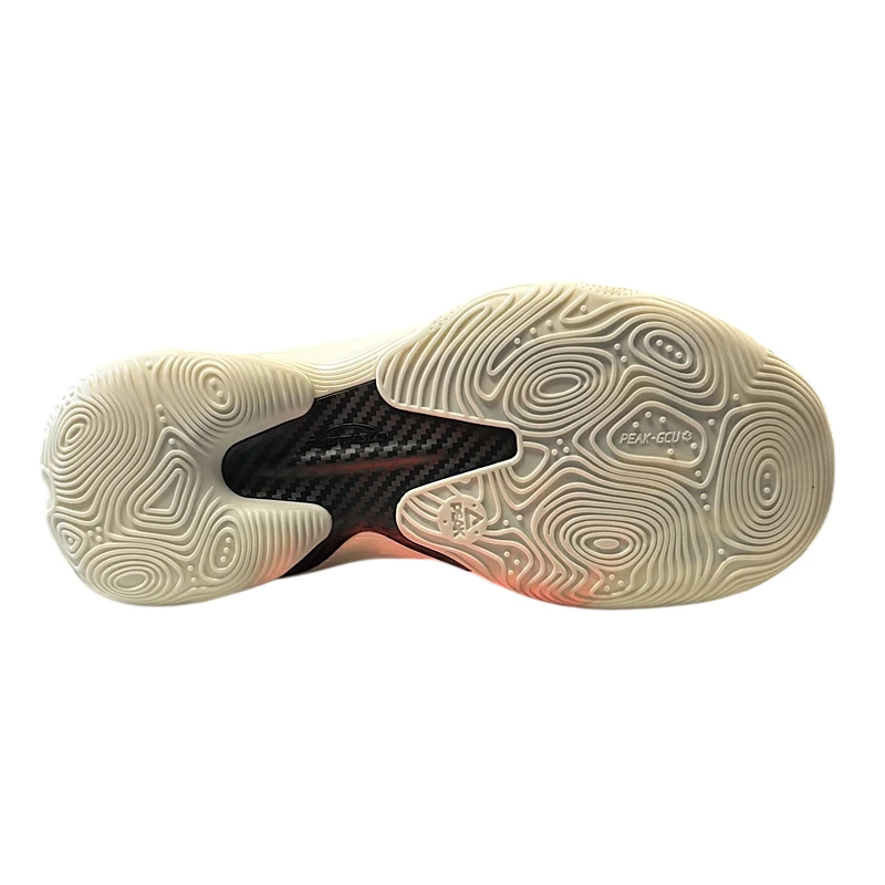 La suela de goma PEAK-GCU está diseñada para ser ligera, duradera y antideslizante, garantizando tracción y control en cada movimiento. Ideal para jugadores de guardia, estas zapatillas, con un peso de solo 350 gr en talla 9 EE. UU., están disponibles en un atractivo tono "White".