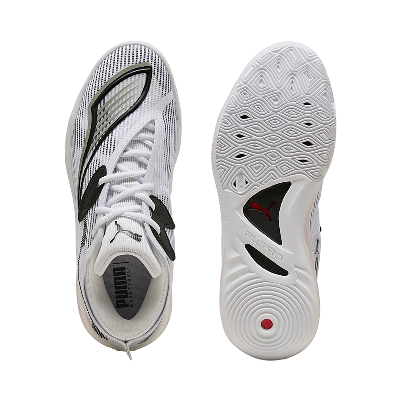 Descubre las zapatillas de baloncesto Puma All-Pro NITRO™ 2 "White Black", una elección ideal para los apasionados del juego que busca un equilibrio perfecto entre rendimiento y estilo. Estas zapatillas han sido diseñadas para ofrecer un confort óptimo y una adherencia excepcional, permitiendo ejecutar movimientos rápidos y precisos en la cancha.