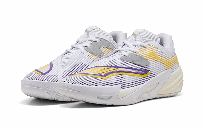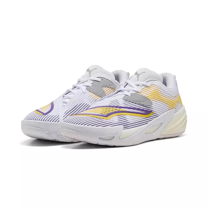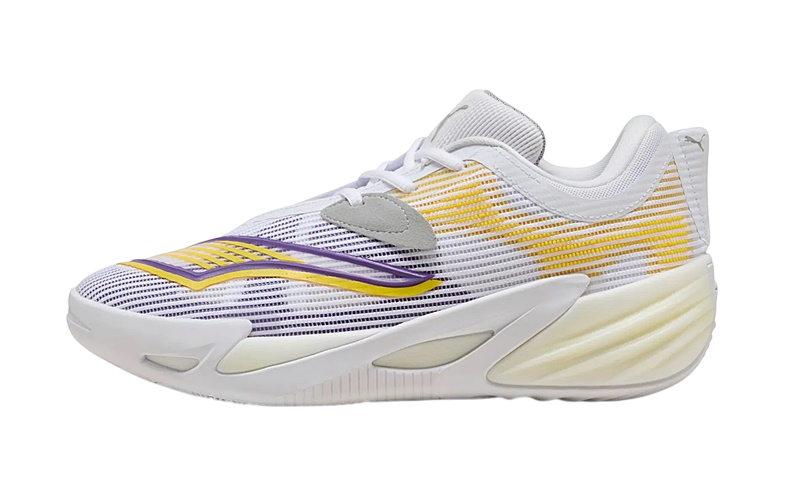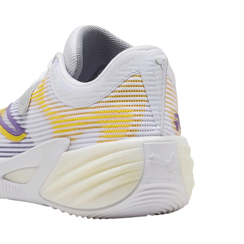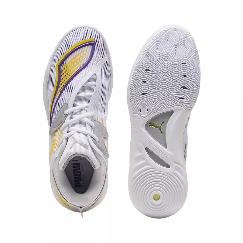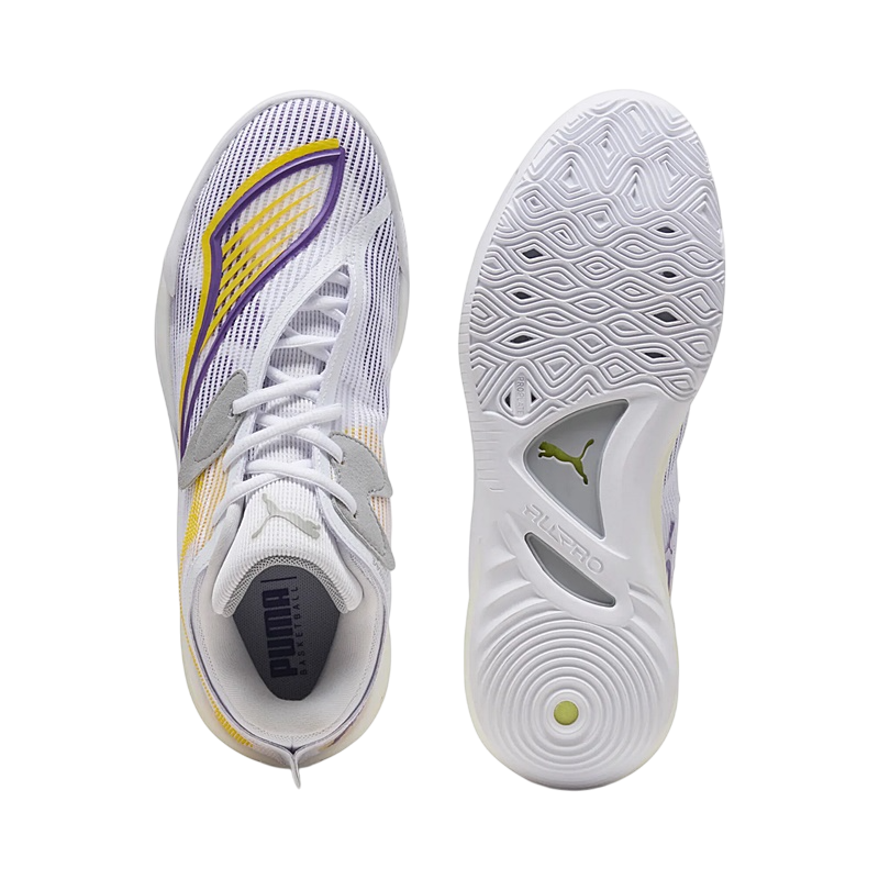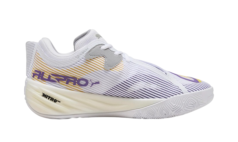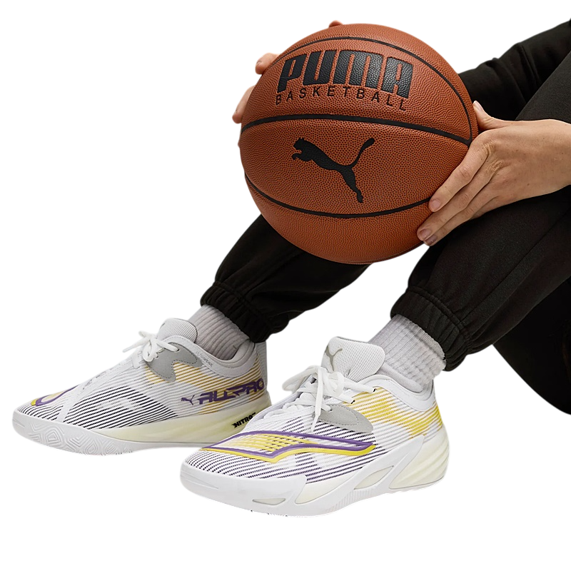 Descubre las revolucionarias Puma All-Pro Nitro™ 2 "White Pelé Yellow", unas zapatillas de baloncesto de alto rendimiento creadas para mejorar tu juego gracias a la avanzada tecnología de PUMA Hoops.