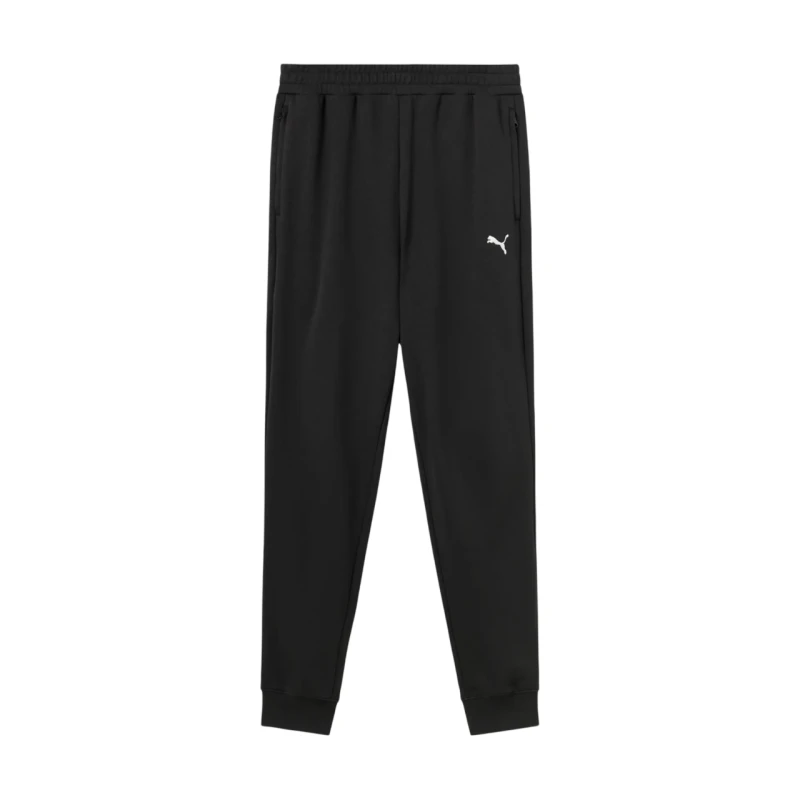 Descubre el pantalón largo de chándal Puma Ess Zipper en elegante color negro, diseñado para hombres que valoran el estilo y la comodidad. Esta prenda básica es ideal tanto para hacer ejercicio como para uso diario, destacándose por su diseño sencillo y liso. En la parte superior izquierda, se aprecia el logotipo de Puma bordado en blanco, un detalle que añade un toque de distinción.