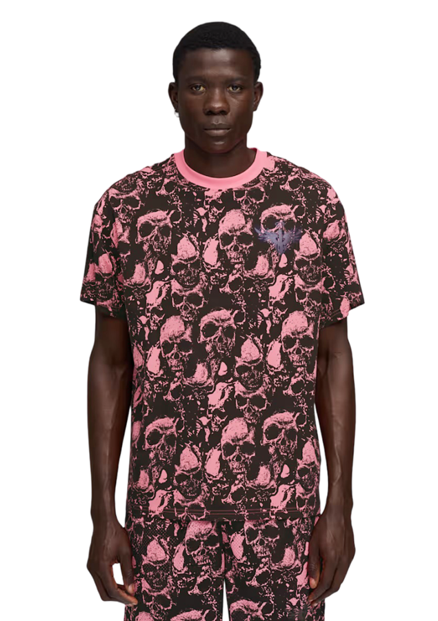 - Estampado Integral de Calaveras: Diseñada para destacar, esta camiseta presenta un audaz estampado de calaveras que captura la actitud desafiante de LaMelo.