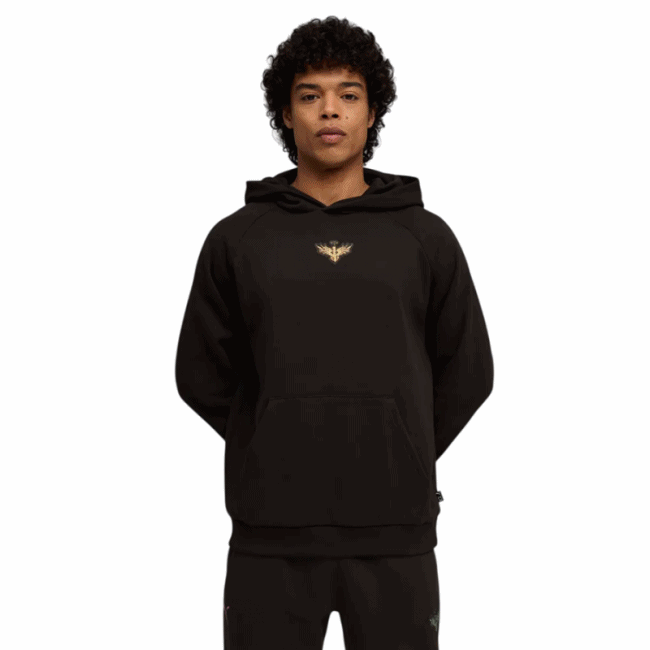 La Puma x Melo Alwayz On 1 Hoodie es un verdadero reflejo de estilo urbano combinado con un toque deportivo. Ya sea que te aventures por la ciudad, disfrutes de un paseo relajado o simplemente quieras sentirte cómodo en casa, esta sudadera es una opción sólida y confiable. Los detalles en "Black-Glowing Red" ofrecen un contraste elegante y moderno, convirtiéndola en tu nueva prenda imprescindible para un estilo con confianza.